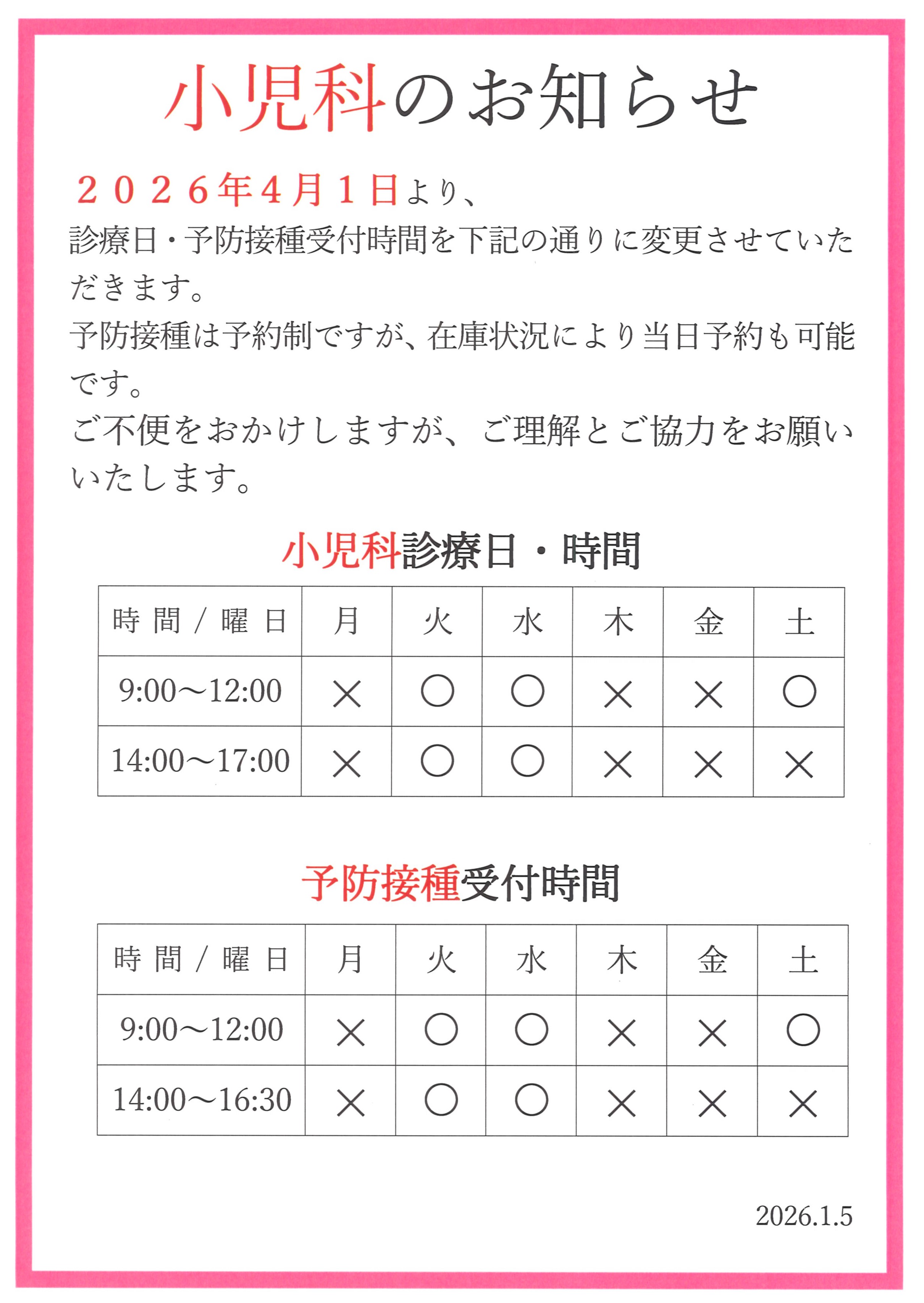 内科の午前受付終了時間を11:30までとさせていただきます。